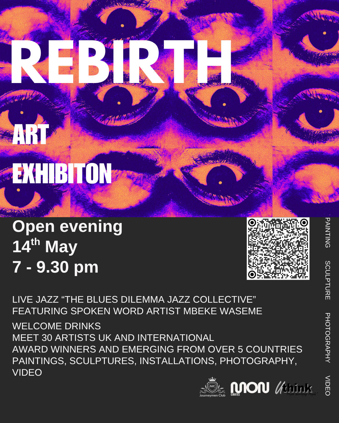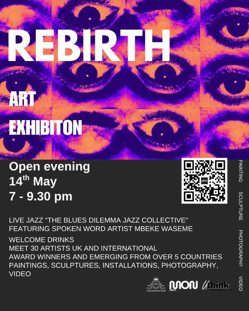 - I am delighted to announce that I will take part in this exhibition, where I will have 4 semi-abstract paintings on show. “REBIRTH” is an exhibition in Bermondsey, London, curated by the independent London curator Monica Mardare (@monartcurates). The Private View is on the 14th of May from 7- 9:30pm and the show runs until the 20th of May. Tickets can be purchased by scanning the QR code on the REBIRTH poster or on Eventbrite. I am looking forward to it!